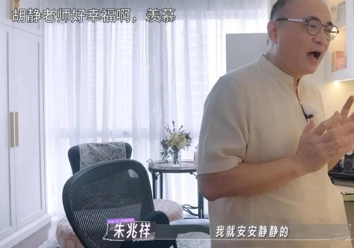 拍摄的时候,朱兆祥对胡静很宠爱。胡静化妆的时候,他不敢多说话也不敢催促,还说只要静姐忙的时候他一说话,她就会嫌他烦。胡静让他尝小吃,他即便不想也会给面子。衣着上胡静怎么安排他就怎么穿,行动上胡静指东他绝不往西,还比胡静考虑得更细致。胡静吐槽老公的时候,她妈妈都看不下去了,足吧,这么好的女婿。